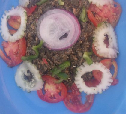 Ingrédients : Moringa déjà cuit, pate de cacahuète (arachide), sésame torréfiés, sel, tomate fraiche, concombre, oignon, piment[…]